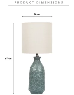 More than a decor item, the Alanya table lamp is a style-conscious lighting solution. The eye-catching, textured ceramic base is topped with a soft-touch fabric lampshade which harbours light around the room.