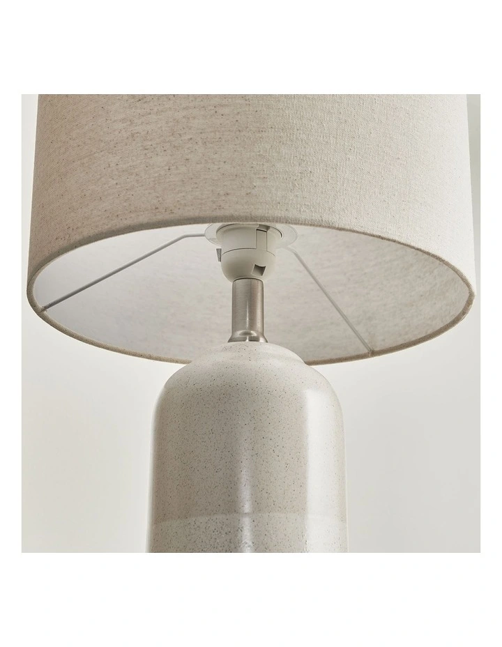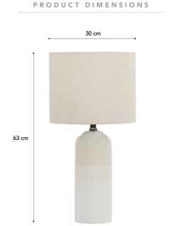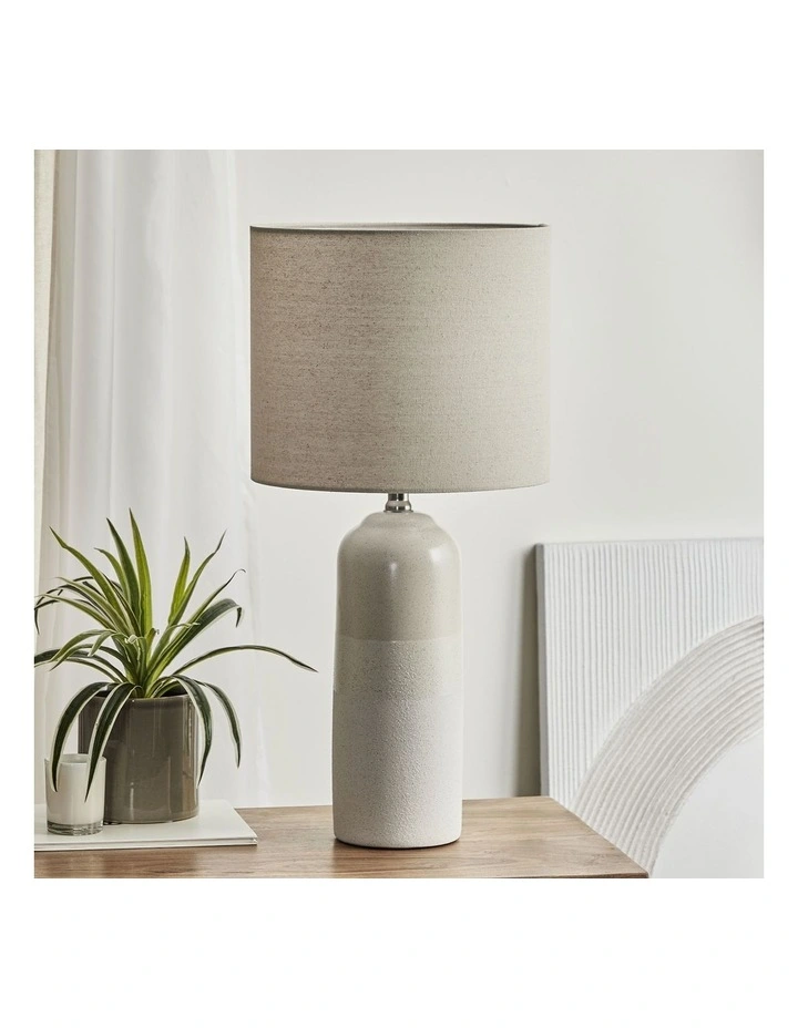 More than a decor item, the Clayton table lamp is a style-conscious lighting solution. The eye-catching, textured ceramic base is topped with a soft-touch fabric lampshade which harbours light around the room.