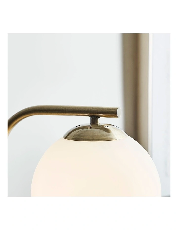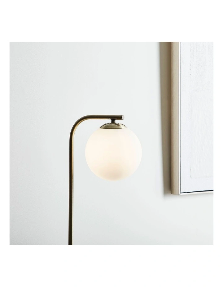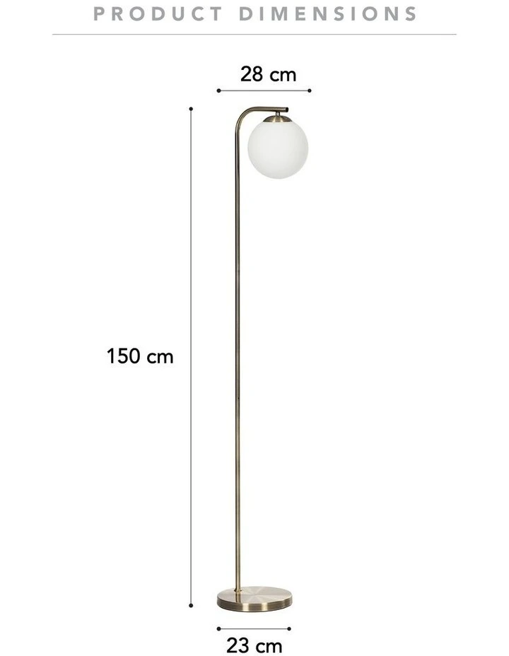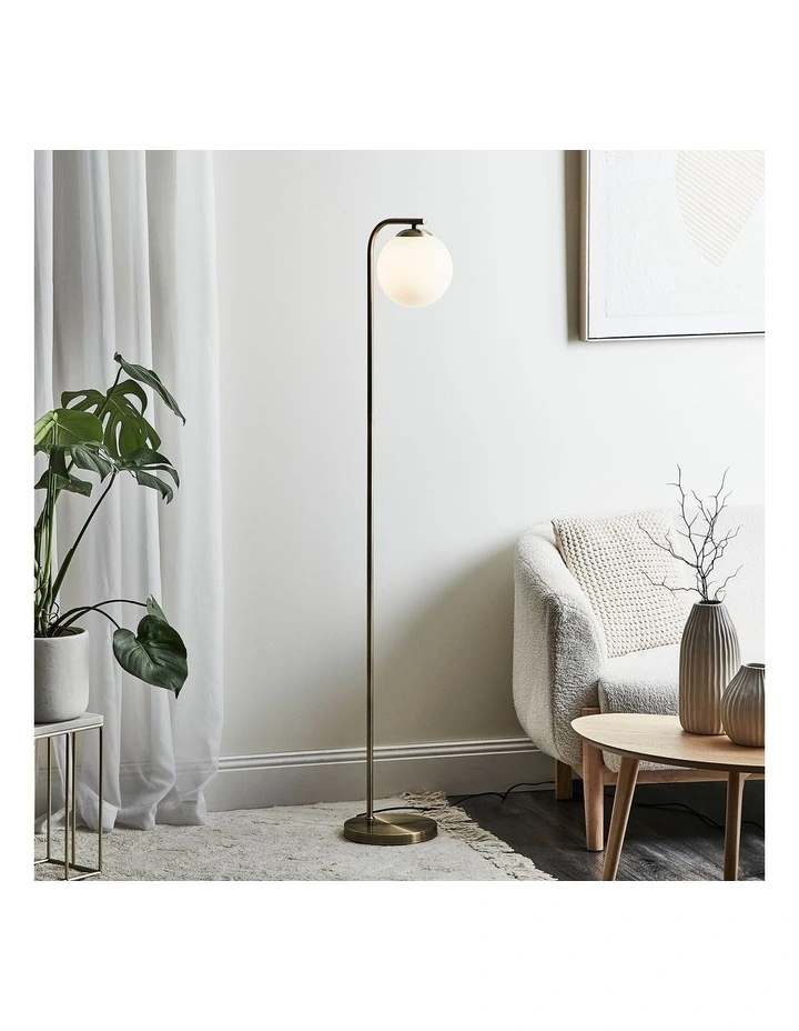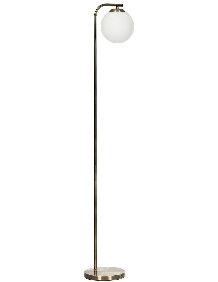 More than a decor item, the Lexington floor lamp is a style-conscious lighting solution. The eye-catching, gold metal base is topped with a white glass bulb shade that harbours light around the room.