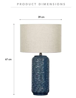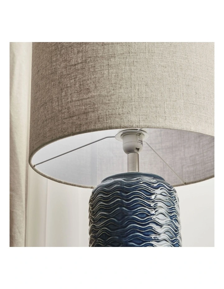 More than a decor item, the Mirage table lamp is a style-conscious lighting solution. The eye-catching, textured ceramic base is topped with a soft-touch fabric lampshade which harbours light around the room.