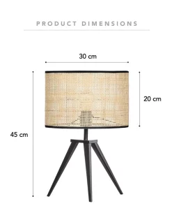 - Metal base; Rattan lampshade.