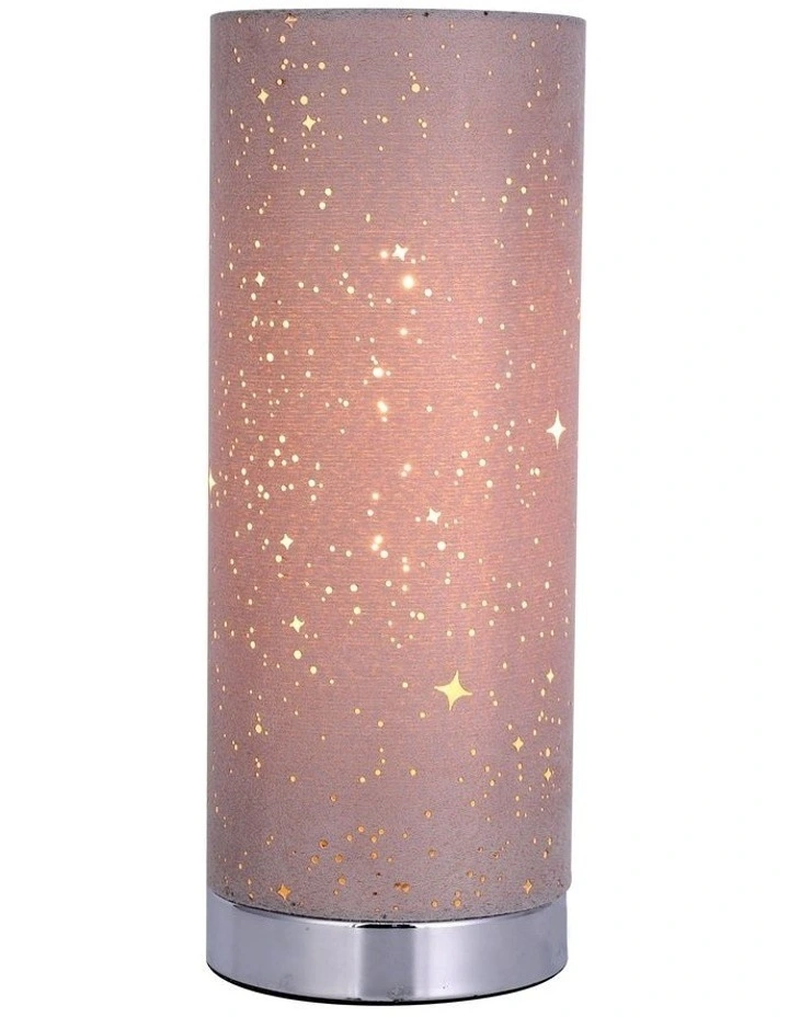 This decorative and stylish touch table lamp featuring warm and shimmering stars textured fabric lampshade and attached with a chrome base, it is an ideal option if you want to create a soft, inviting atmosphere. Great for table lighting, shelf lighting, office or living room lighting, eg, buffets, nightstands, kids bedside tables, desks, coffee table or TV sets and highlighting dark corners – virtually anywhere really! Available in white and grey.