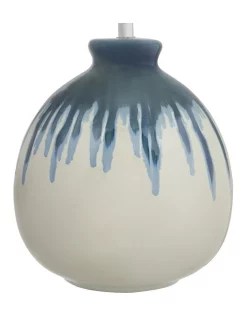 - With a durable ceramic rounded base, a simple linen shade and an eye-catching leaking paint detail