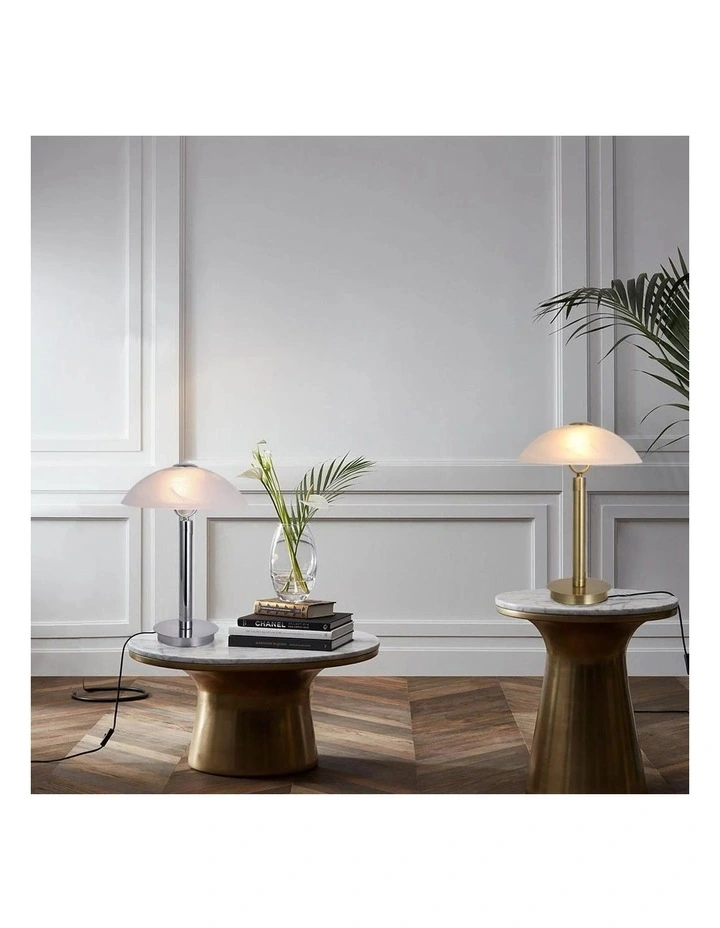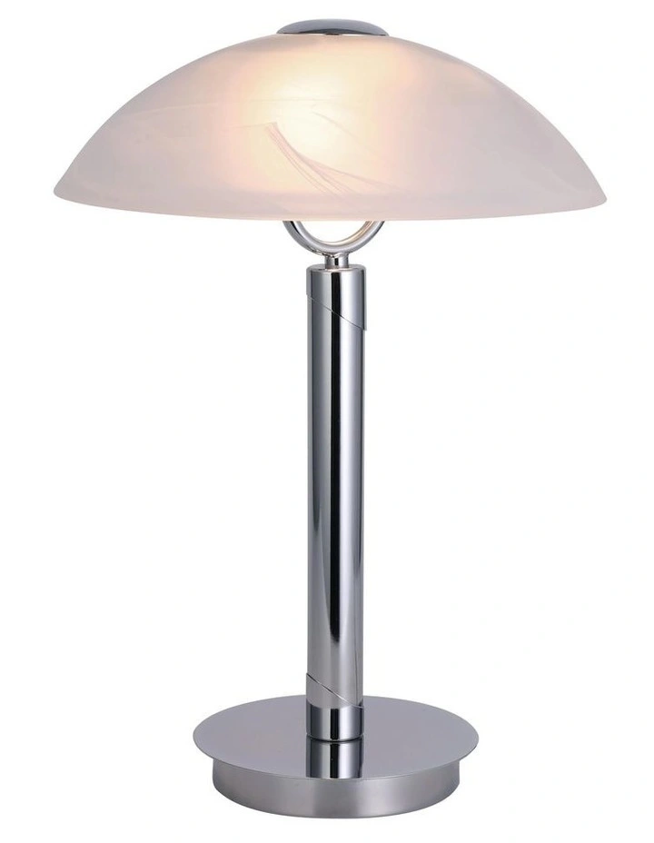- Chrome base and Opal White lampshade