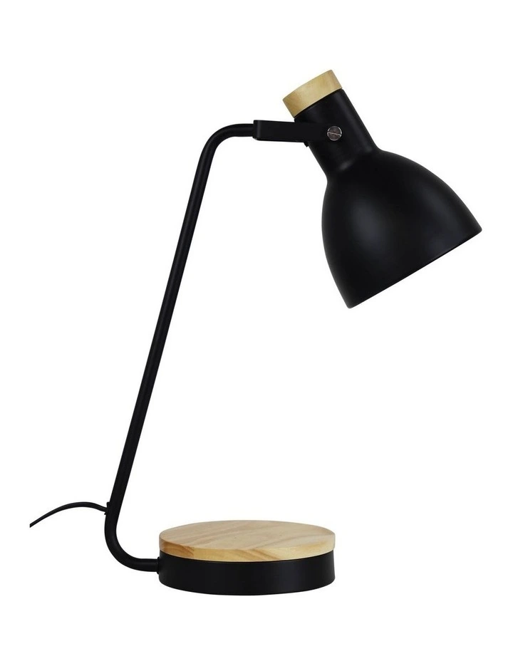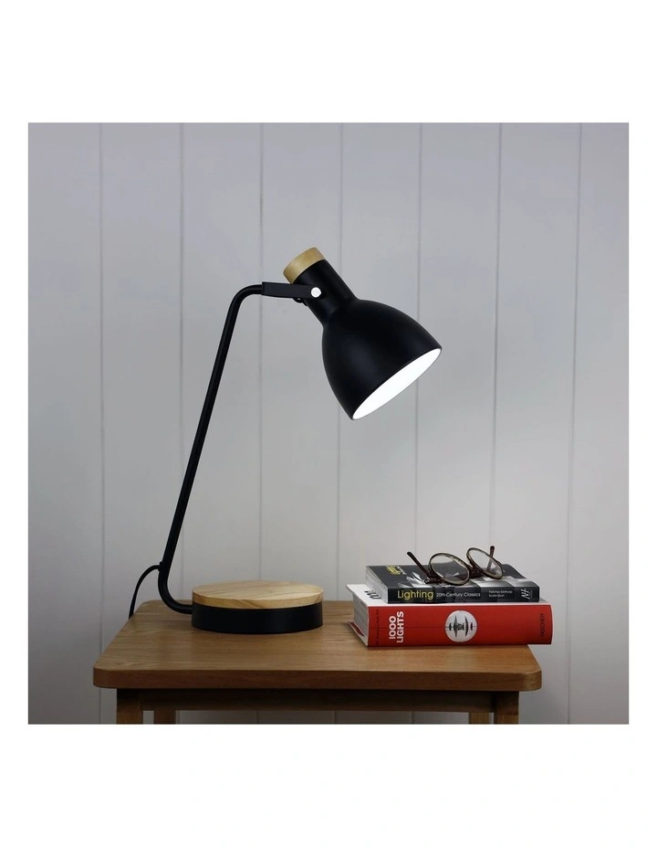 The scandustrial look of the BENNY desk lamp brings together matt finished metalware with blonde wood timber. A practical desk lamp with natural timber highlights.