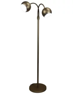 Twin floor lamp with flexible arms and classic retro heads. The BOBO is truly striking. Easy to operate on/off foot switch is located on the power cord. Shades have a white inner for better light reflection.