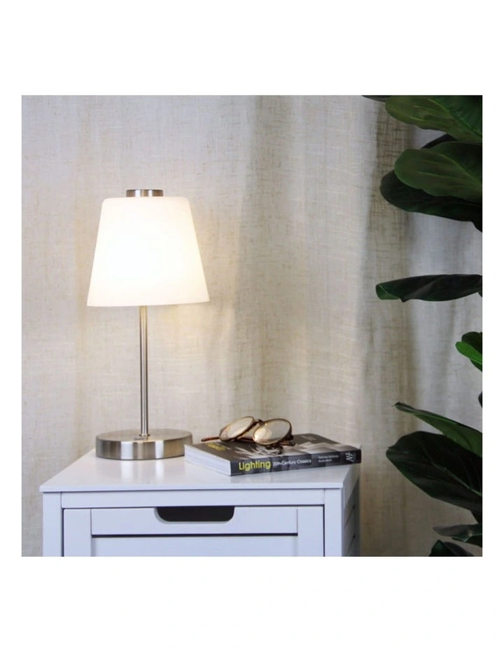 A modern twist on a classic, Integrating the convenience of touch control with the latest LED energy-saving technology. Ideal as bedside lamps, It produces a soft warm white glow that can be dimmed with the dimmer switch featured on the base. Complete with frosted glass shade and a brushed chrome metal base, The ERIK LED touch lamp also includes its own plug-pack.
