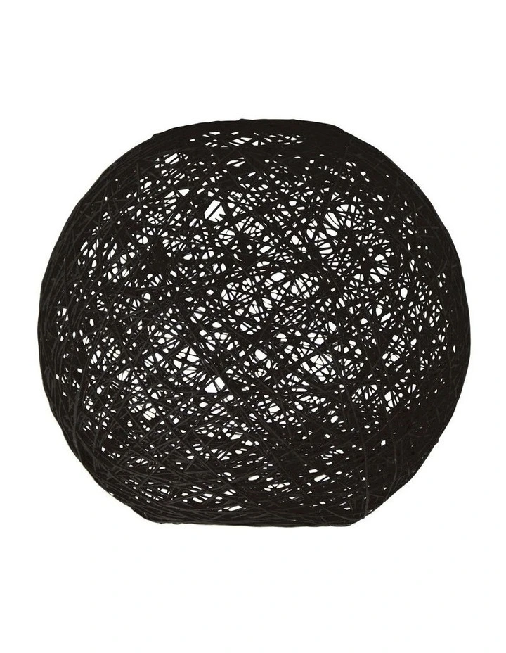 KONO DIY woven string spherical shade. Designed to fit straight onto an existing batten holder or suspended on a B22 DIY cord-set. A large opening at the bottom makes changing globes a breeze. Also available in larger sizes as a hardwired pendant, in black or white.