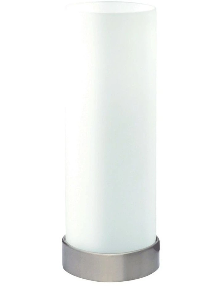 Pepe Round Touch Lamp in Opal Matt with Brushed Chrome Base