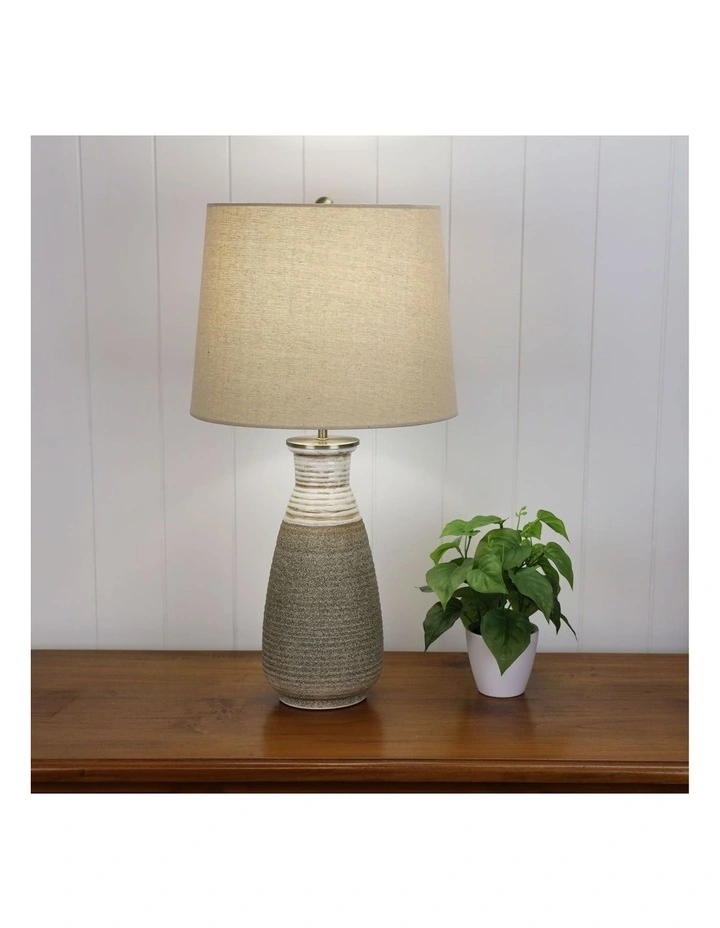 The Potton ceramic table lamp comes complete with a natural linen shade. At 62cm tall, the Potton is a statement piece that can adapt to most rooms in your home. The on/off switch is located on the cord.
