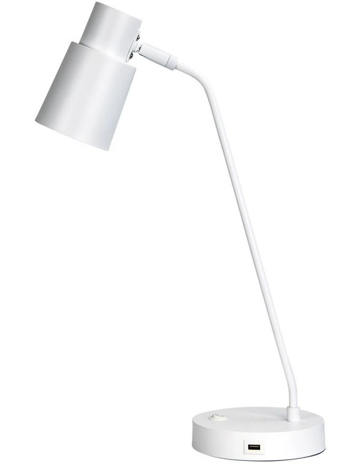 Charging your phone or tablet has been made that much easier with the RIK table lamp which features a 2.1A/5V built-in USB socket. With a Stylish lamp head, tall neck and an easy to use switch located on the base, the RIK covers all bases from bedside to desk lighting.