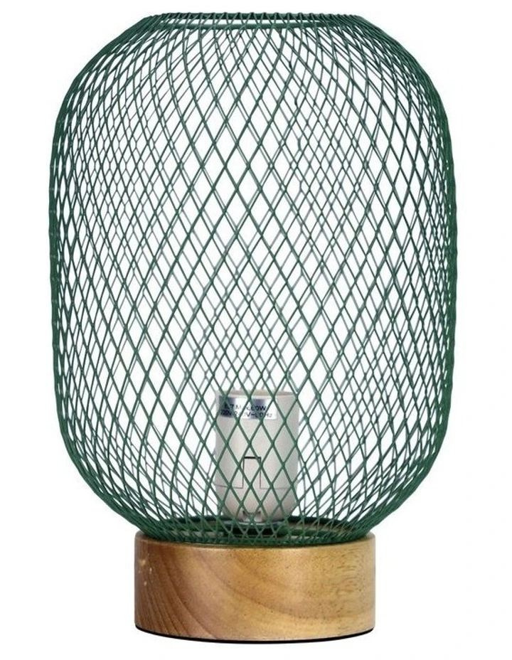 TILDA mesh table lamp features an open mesh shade upon a natural timber pedestal. Nice sized lamp (28cm tall), the switch is conveniently located on the cord.Β