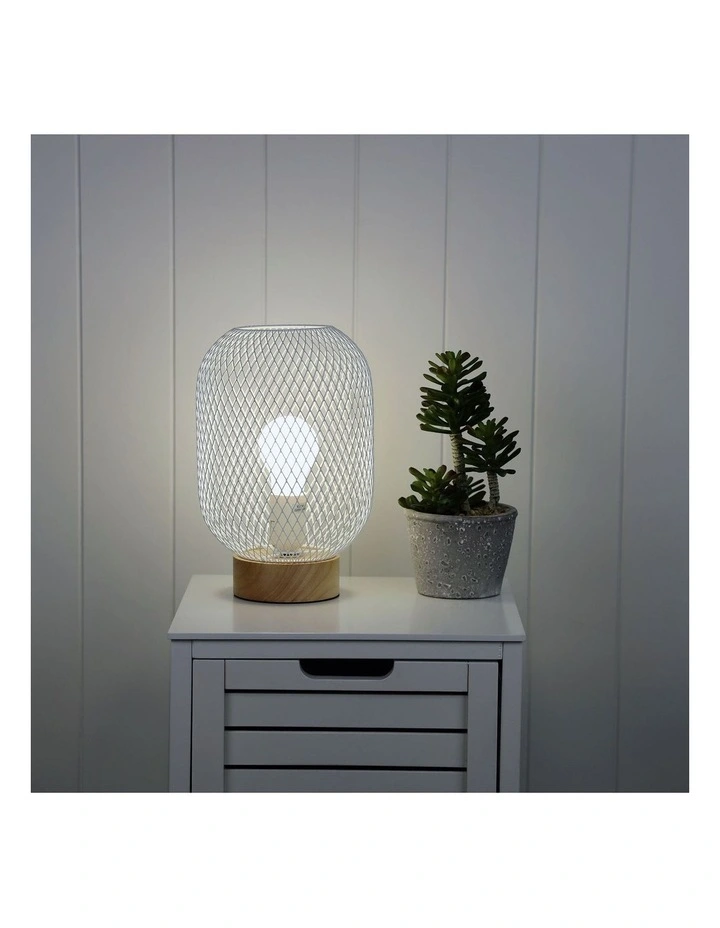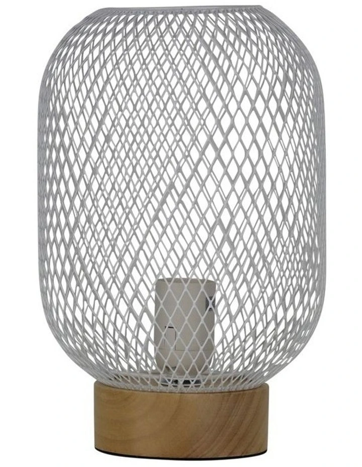 TILDA mesh table lamp features an open mesh shade upon a natural timber pedestal. Nice sized lamp (28cm tall), the switch is conveniently located on the cord.Β