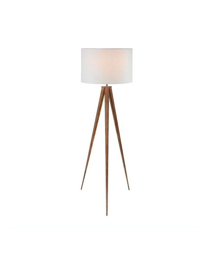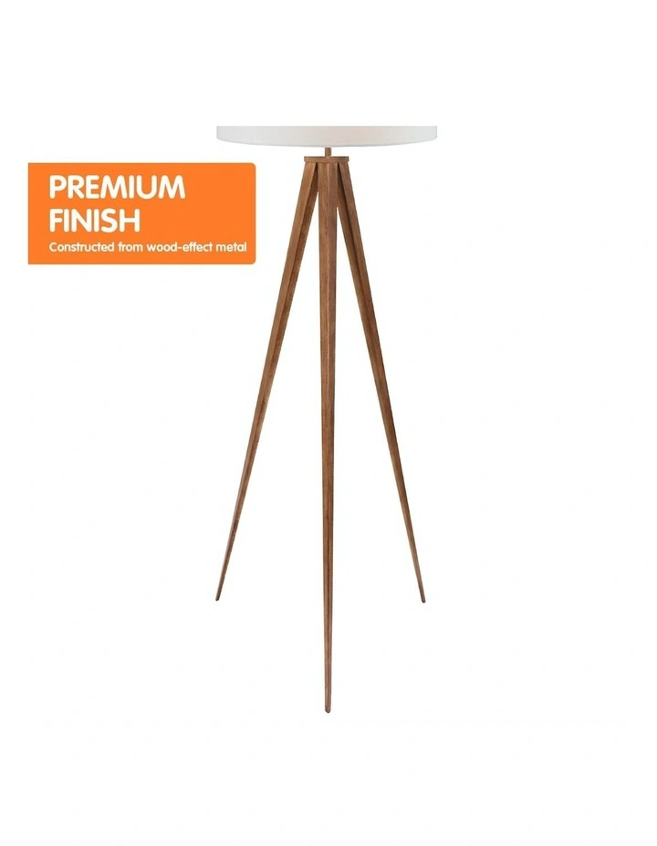 The wood-effect tripod lets you enjoy the look of natural materials with the durable qualities of metal. Its legs narrow into fine points, giving this lamp a dramatic look while remaining sturdy and stable. The floor lamp also comes with a white drum shade that casts an ambient glow.