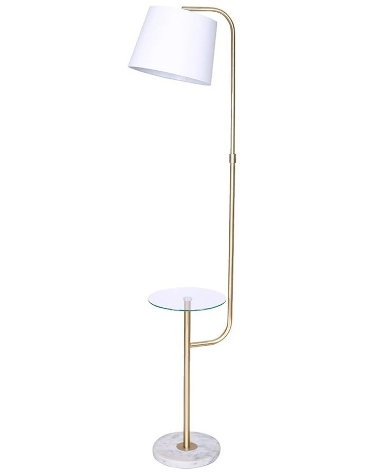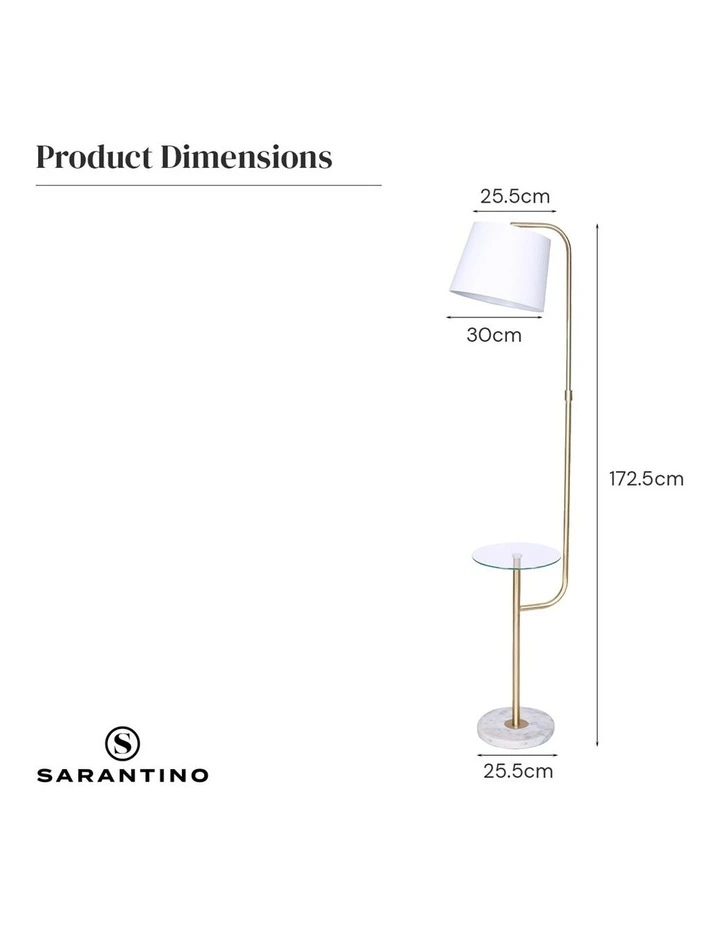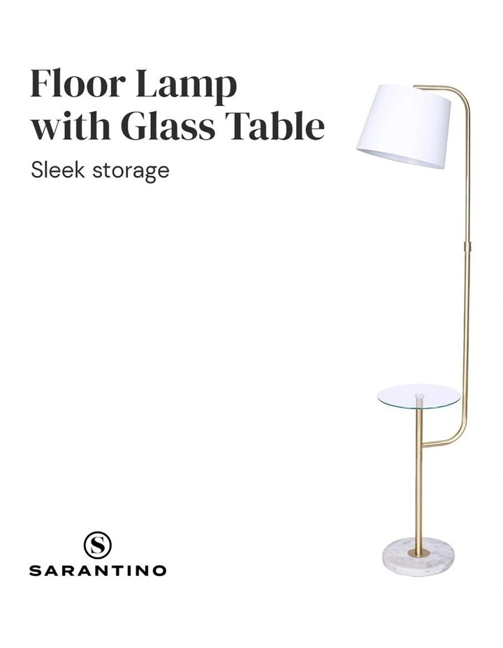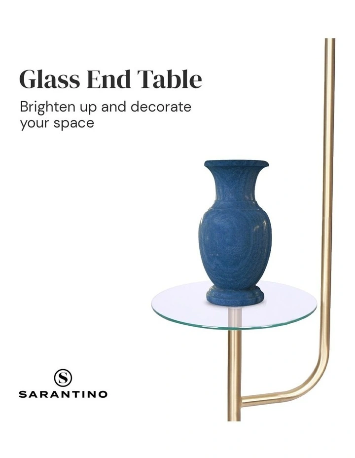 The convenient pedal switch allows you to easily tap the lamp on or off with your foot. With a weighted marble base, this lamp will not easily wobble or tip over. Place it next to your sofa or favourite chair and use the built-in glass shelf as an end table.