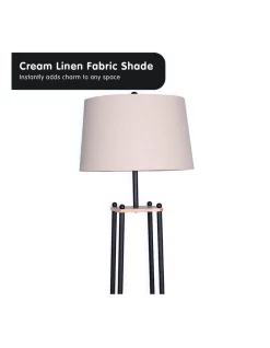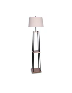 A tapered linen shade sits on top of the shelving, giving the floor lamp a clean and classic look. The cream shade complements most furniture and decor. This is an understated lamp that will fit in perfectly with calming and neutral interiors.