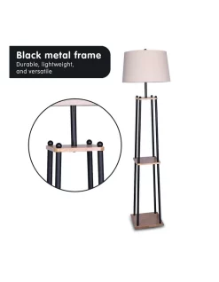 Combining style and functionality, this shelf floor lamp adds warmth and elegance to any space. It has a high-quality metal frame with two sturdy shelves, perfect for displaying photos, souvenirs, books, houseplants, and more. The lower shelf also acts as a base, making this floor lamp more stable and sturdy.