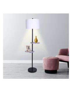 This shelf floor lamp can be fitted with any 60-watt E27 bulb (not included) to create the ideal ambience for your space. The white drum shade diffuses light evenly, resulting in a radiant glow for your living room, dorm room, or workspace. The lamp also has a sturdy metal base for maximum durability and stability.
