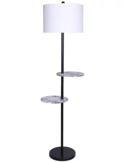 Add elegance to your space with this modern shelf floor lamp. It features two marble-effect shelves perfect for displaying photos, houseplants, books, and other collectibles. They’re also handy for setting down remotes, smartphones, and other small items throughout the day.