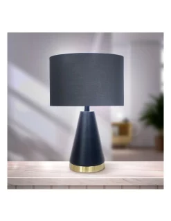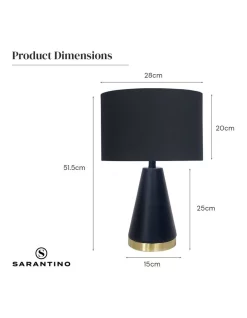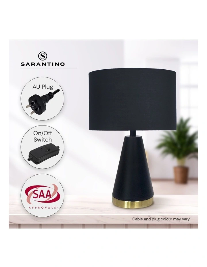 This table lamp, featuring a black and gold tapered metal base, securely stands on any surface or tabletop. It is a luxurious and elegant decor piece that will complement your space while adding illumination.
