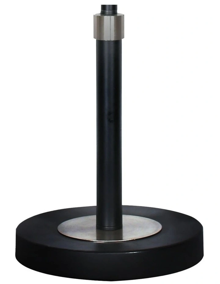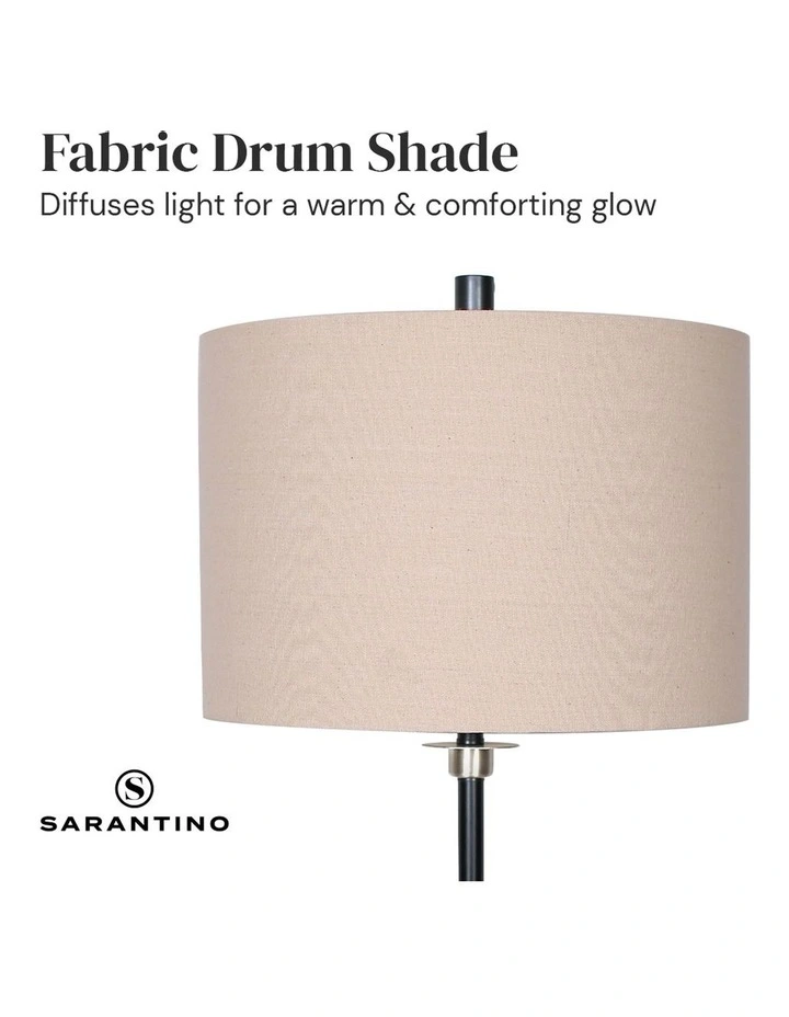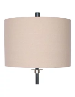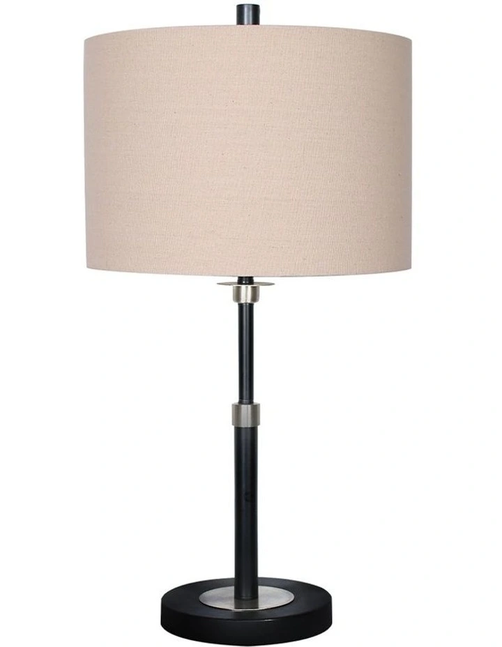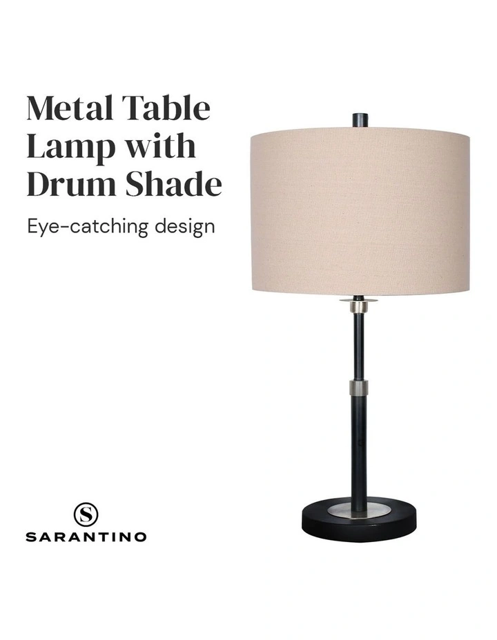 With its black metal and brushed nickel finish, this table lamp is an eye-catcher in any room. Its cream linen drum shade is attractive and elegant, perfect for a wide variety of interiors. This lamp is a great choice for the living room, bedroom, office or study.