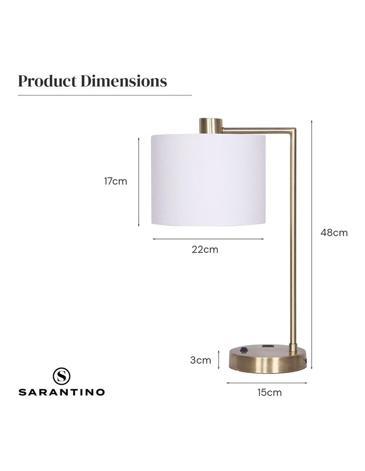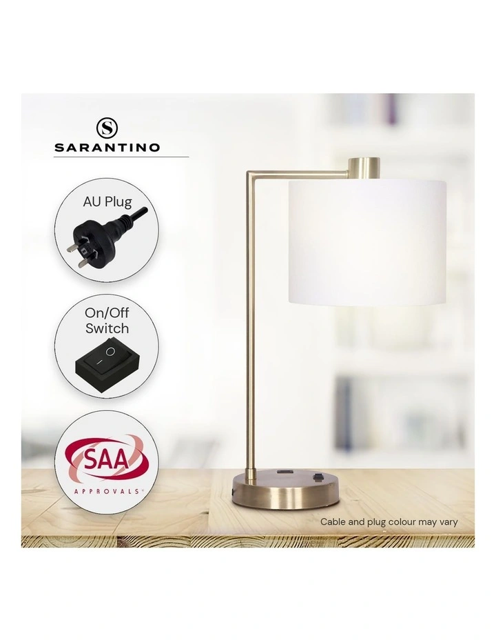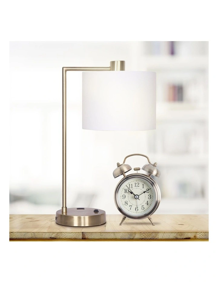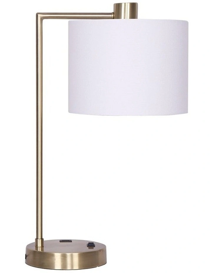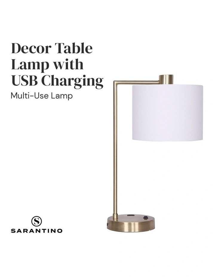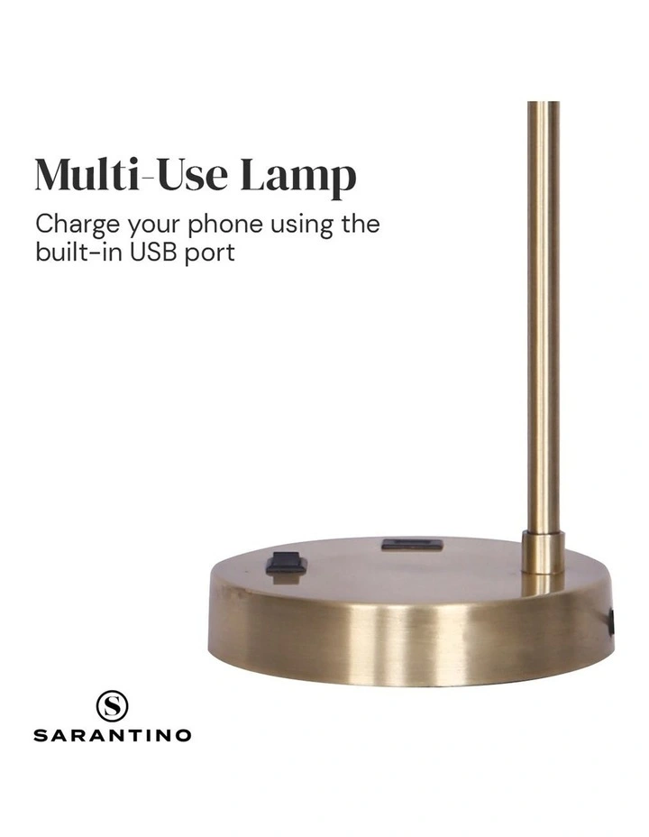 This metal task lamp is a modern piece that includes a USB phone charging system. The port located on the base lets you can charge up a phone simultaneously.