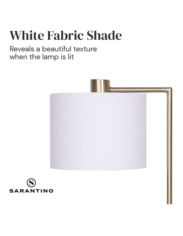 A beautiful texture on the white fabric shade reveals itself when the lamp is lit. A sleek design that is flush with the surrounding area provides an attractive charging station with easy access to your phone.