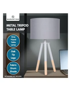 With a classic tripod stance, this accent table lamp offers plenty of style and versatility. The grey painted metal legs and fabric drum shade easily suit contemporary and modern spaces, while the eco-friendly rubberwood leg tips soften the look for urban, casual or updated lodge looks.